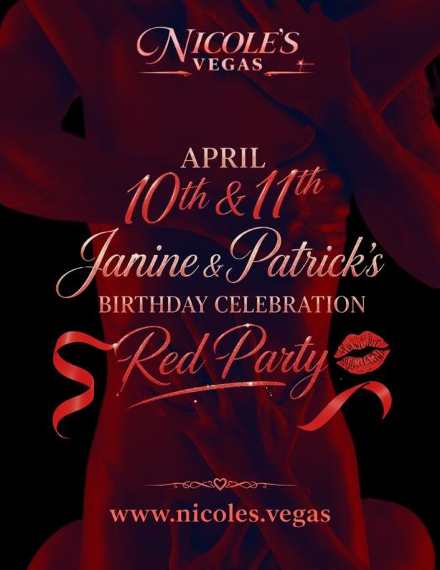 Join us in celebrating Janine & Patrick's birthday with an 'I See Red' themed evening. Standard club amenities, playrooms, and a night to remember for the lifestyle community. Red attire...